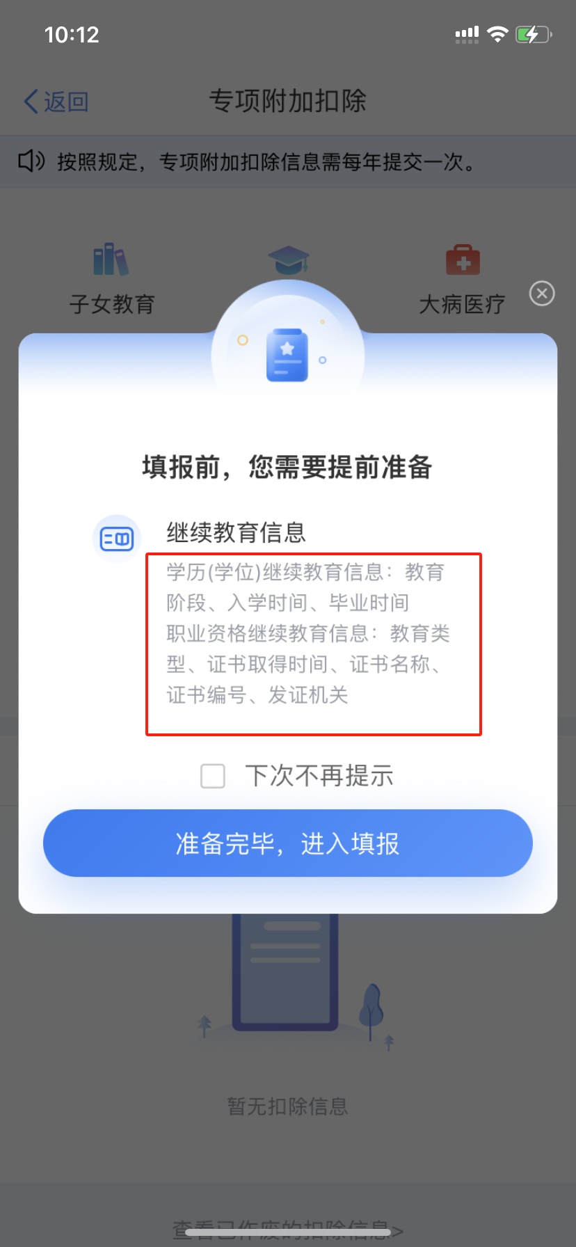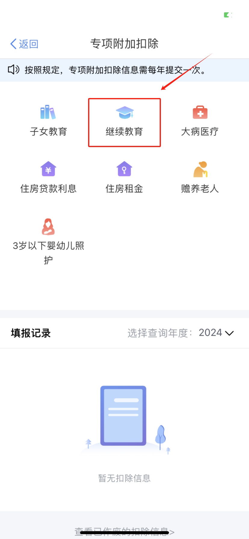 第二步,在專項附加扣除頁面,點擊“繼續教育”。