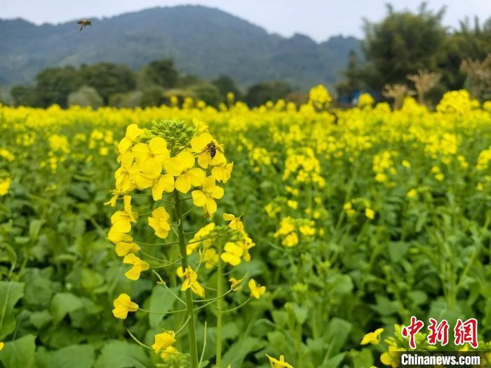 中新網(wǎng)賀州2月26日電(姚富航)連日來(lái),廣西賀州市昭平縣昭平鎮(zhèn)油菜花迎春綻放,盛開(kāi)的花景吸引了許多游客前來(lái)賞花,他們悠然漫步在花田中,用相機(jī)定格美好瞬間,感受春日美好。