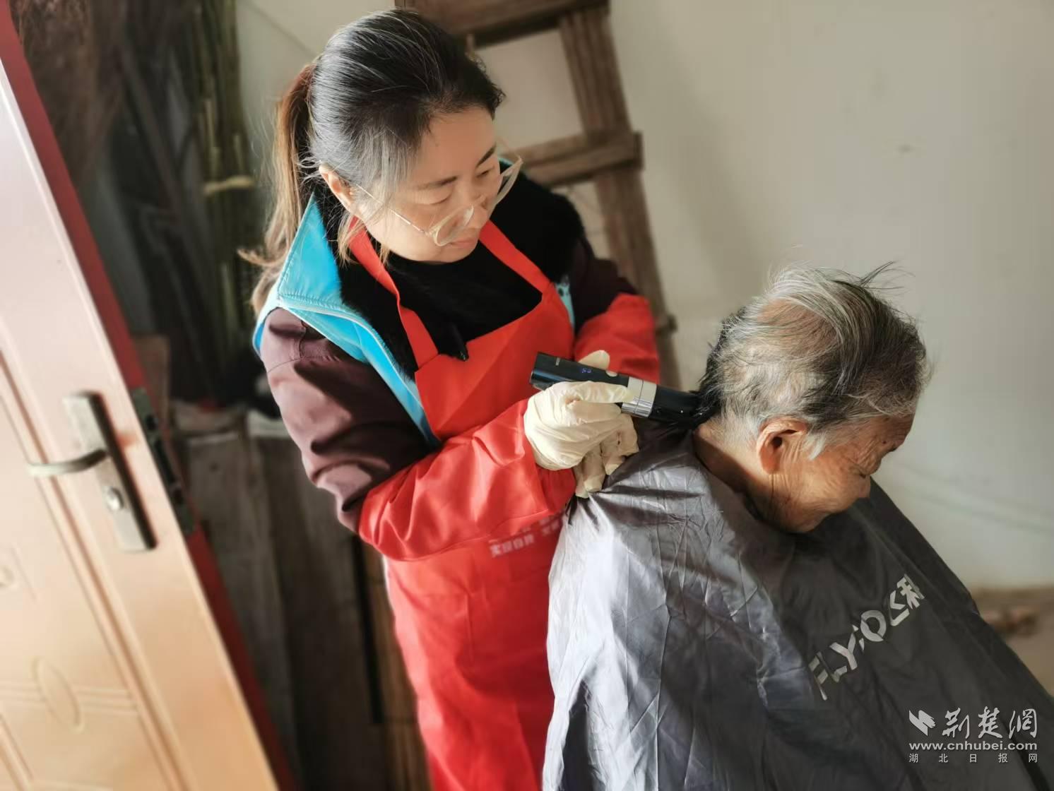 專職助老員為老年居民提供居家理發服務。通訊員供圖