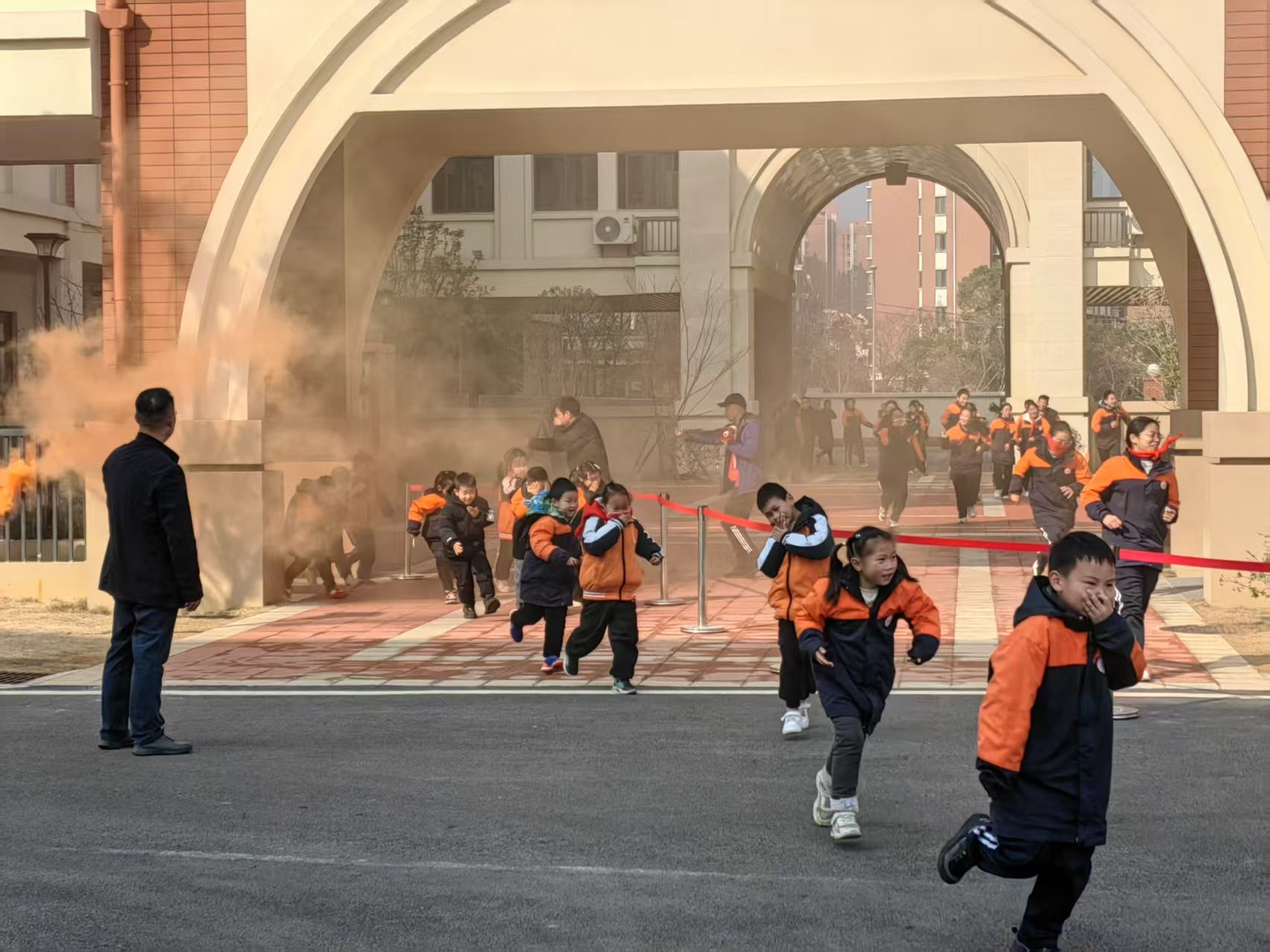 操場上突然煙霧四起,500余名師生化身為訓練有素的逃生達人,齊刷刷地彎腰捂鼻,在能見度不足2米的通道里“火線突圍”,高效有序撤離。