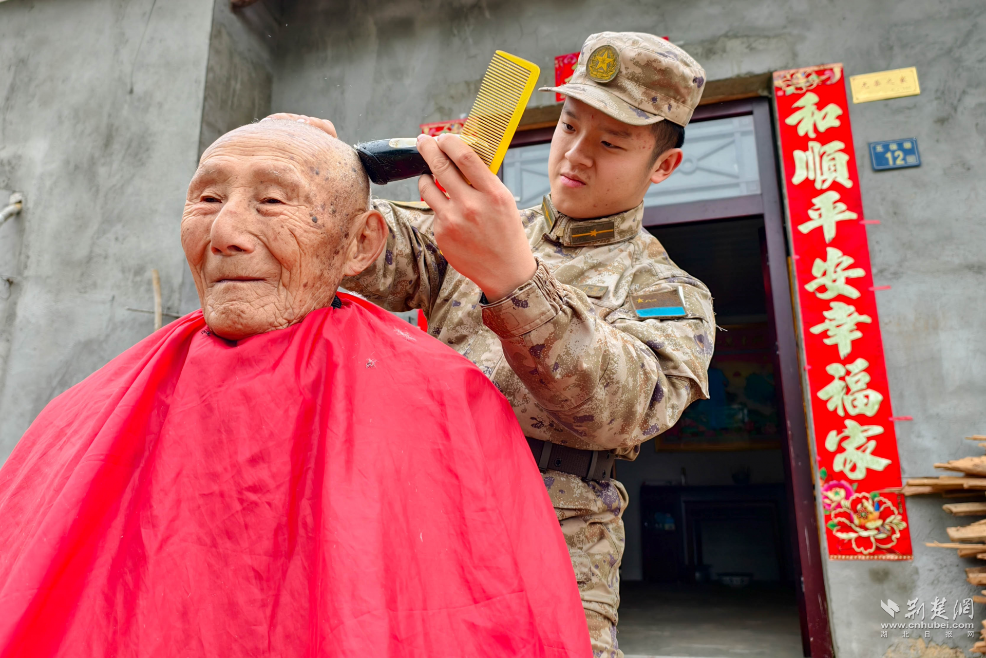 “小伙子,你的手藝真不錯,我感覺一下子年輕了十歲!”在法泗街桂山村90歲參戰老兵葛耀庭家中,部隊張班長熟練地為老兵葛耀庭圍上圍布,拿起剪刀和梳子,精心地為老兵葛耀庭修剪頭發。在理發的過程中,志愿服務隊和老兵葛耀庭聊起了家常。老兵葛耀庭回憶起自己的軍旅生涯,感慨萬千:“現在的生活越來越好啦,你們年輕人一定要珍惜啊。在部隊的要好好訓練,在學校的要好好學習,將來為國家多做貢獻。” 志愿服務隊隊員紛紛認真地點點頭。