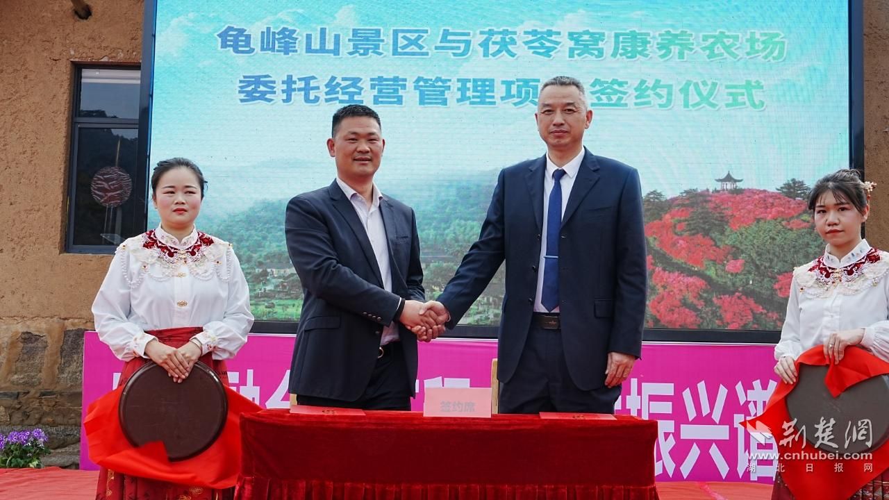 茯苓窩康養(yǎng)農(nóng)場與龜峰山景區(qū)運(yùn)營團(tuán)隊(duì)代運(yùn)營合作簽約。楊利 攝影