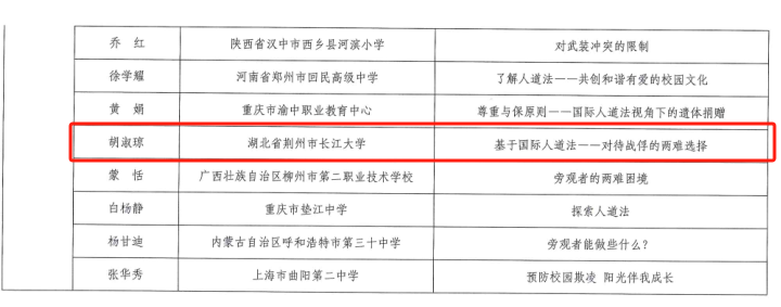 荊楚網(湖北日報網)訊(通訊員 李靜、彭娟)2月27日,湖北為推動紅十字運動知識和國際人道法傳播工作深入開展,中國紅十字會公布了探索人道法項目課程大賽獲獎名單。其中,荊州市中醫醫院眼科負責人、武漢大學副教授、長江大學醫學部碩士生導師胡淑瓊主講的《基于國際人道法——對待戰俘的兩難選擇》課件榮獲紀念獎。