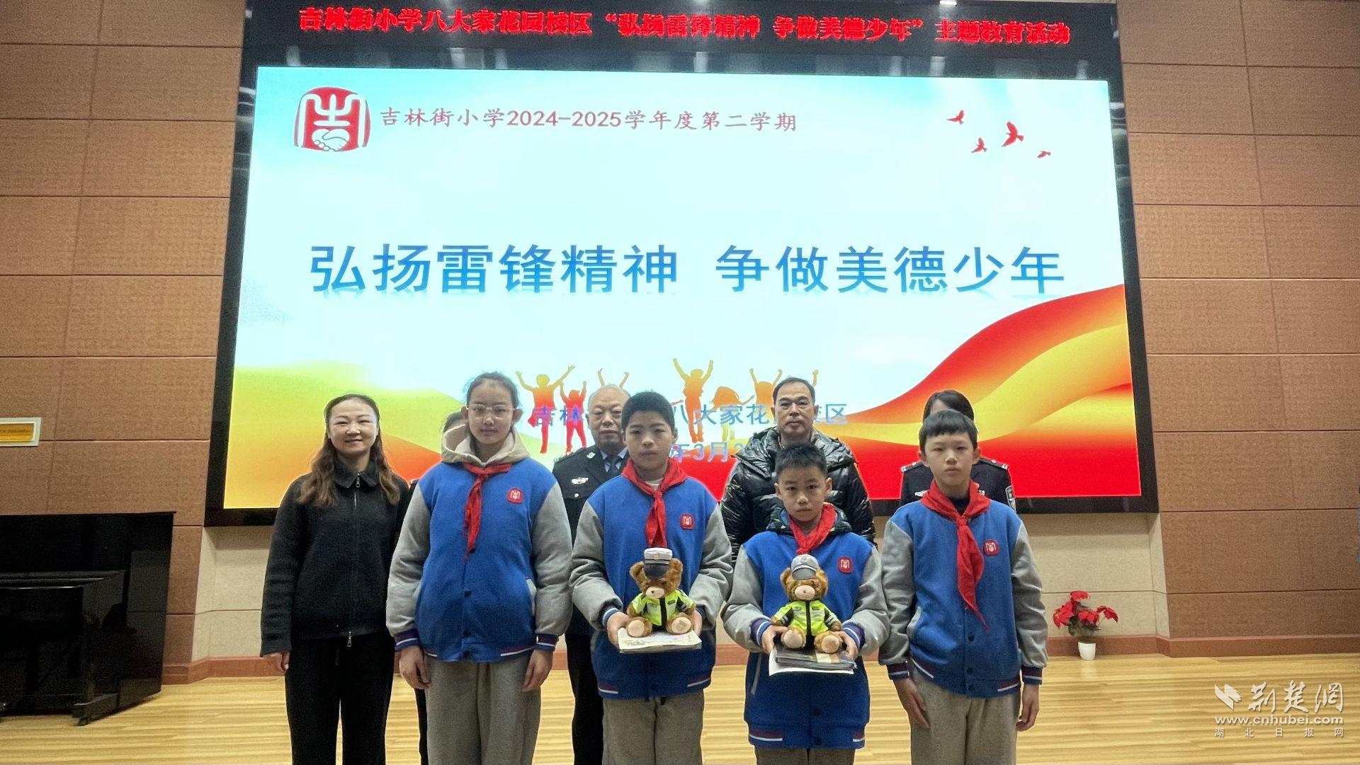“3·5”學雷鋒日到來之際,為表揚詹同學和張同學拾金不昧的高尚品德,紅衛路街派出所的民警輔警一行特意來到兩人所在的紅衛路小學八大家花園校區,為其舉辦了一場特別的“頒獎儀式”。