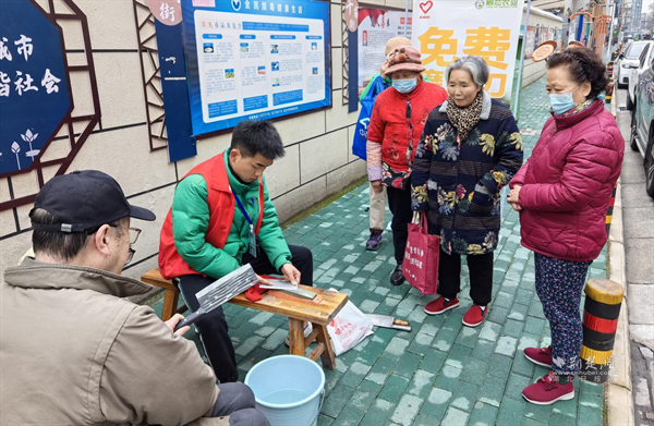 荊楚網(湖北日報網)訊(通訊員 張舜)為進一步提升社區居民的生活便利性,增強居民的幸福感與獲得感,近日,武漢市武昌區首義路街道千家街社區聯合“糧芯農業”志愿者,將便民服務送到居民“家門口”。活動設置了磨菜刀、補鞋等貼近群眾日常生活的服務項目,受到了社區居民的廣泛好評。
