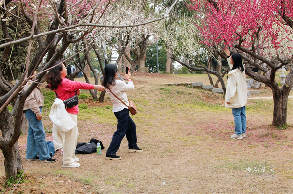 女職工在梅園拍照打卡。 通訊員供圖