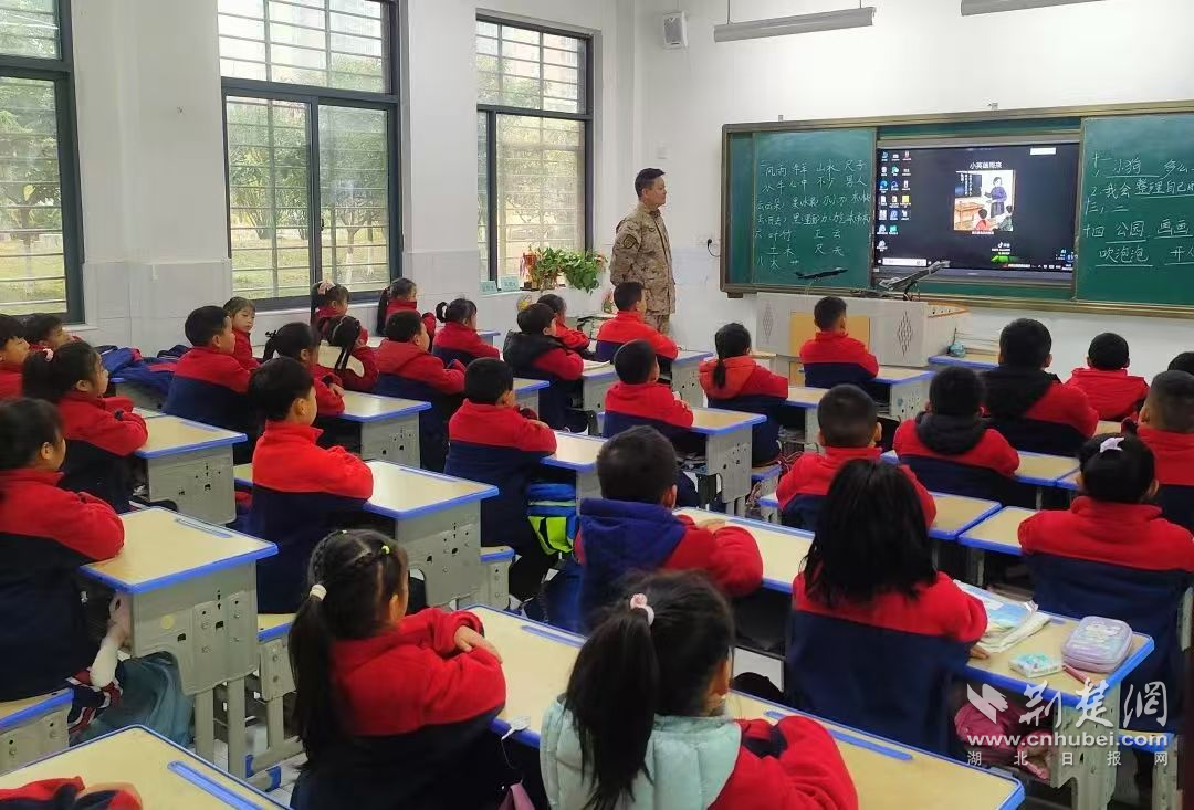 荊楚網(湖北日報網)訊(通訊員常夢星)為增強學生國防意識,培養愛國主義精神,3月4日,江陵縣退役軍人陳鵬走進縣郝穴小學,為一年級的學生們開展了一堂生動的國防教育課。