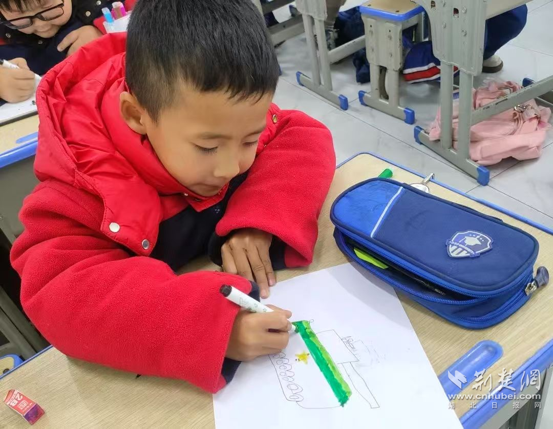 除了理論講解,現場還組織了實踐活動,帶領學生學習和認識軍事裝備,并畫出自己最喜歡的武器裝備。
