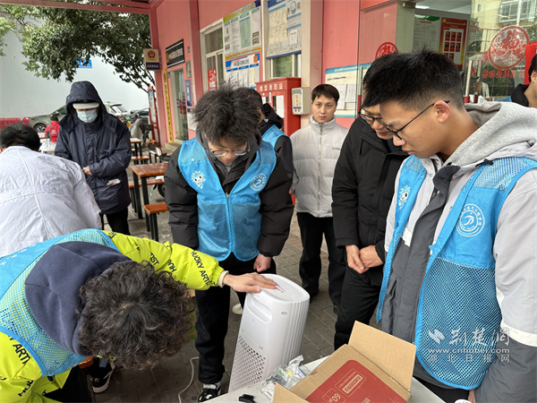 武漢工程大學郵電與信息工程學院的志愿者們認真為居民維修小家電。 通訊員供圖