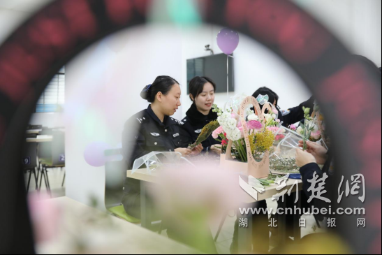 3月6日下午,襄北監獄組織女民警、女職工和警屬開展“巾幗勇爭先”插花課堂。