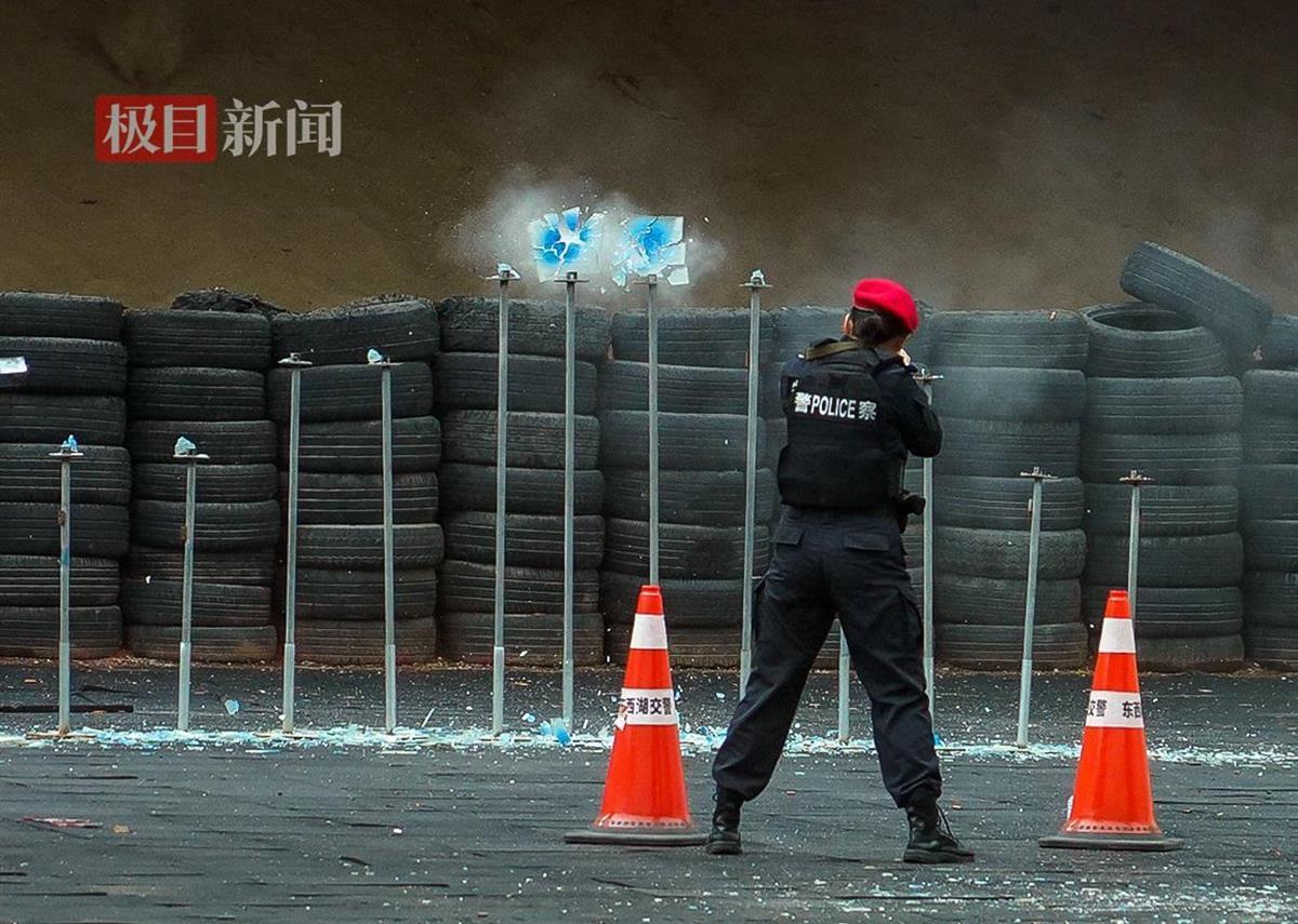 隊員們的手被風吹得干燥發(fā)白,但頭盔下的額頭和鼻尖,卻因為控制精準發(fā)力和呼吸節(jié)奏而冒出些許汗珠。手槍是空槍,她們對著白墻,一瞄就是半個小時。