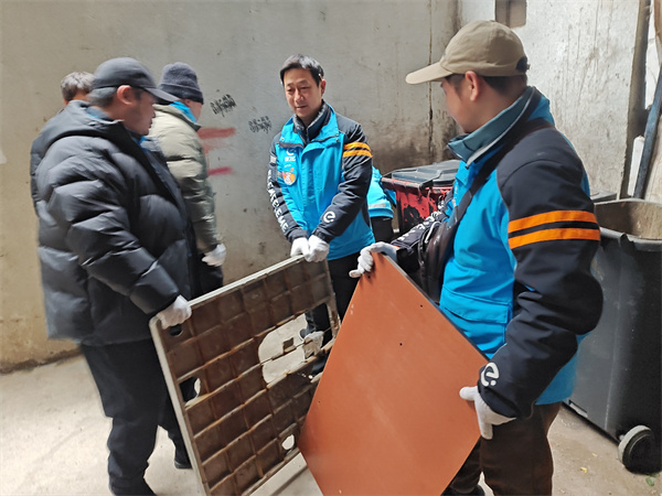 與此同時,另一組志愿者對樓道堆物、綠化帶垃圾進行“大掃蕩”。他們或彎腰撿拾,或合力搬運,清除衛生死角。經過兩個多小時的奮戰,累計處理衛生死角4處,清除各類小廣告10余張,清運垃圾2車,讓樓道環境煥然一新。