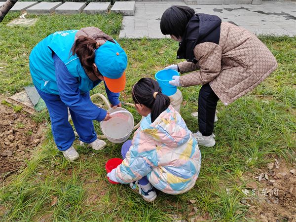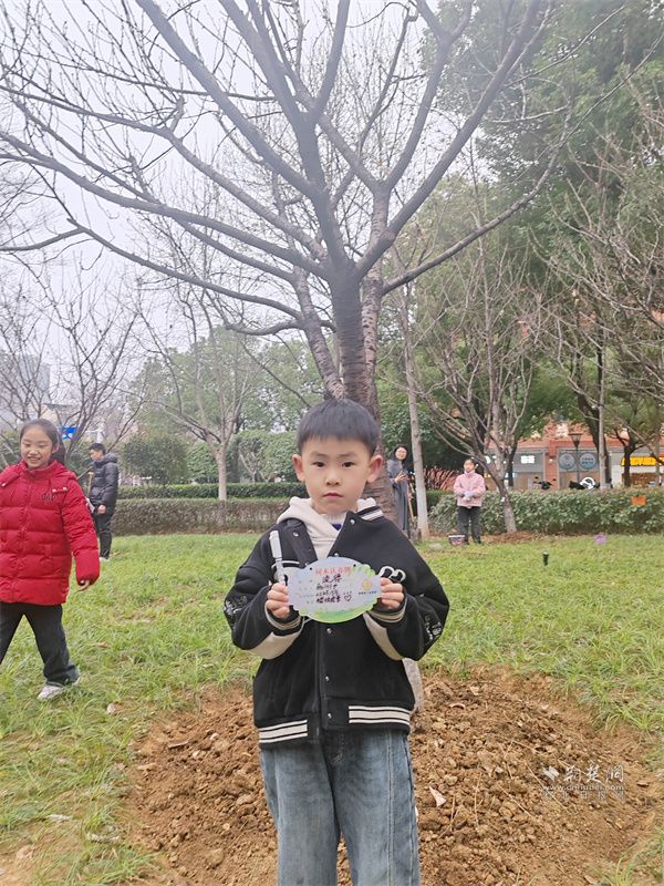 活動還設置了“認養一棵樹木,播種一片希望”環節,參與者在自己養護的樹木上掛上“認養牌”,并在認養牌上留下姓名和祝福寄語。一句句真摯的寄語,承載著大家對美好環境的向往,也寄托著對未來的美好期盼。活動最后,大家相約在櫻花盛開的時節重聚,共同為樹木進行培育養護。