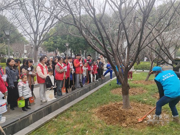 活動當天,轄區親子家庭、大學生志愿者及居民環保愛好者30余人早早來到植樹點。活動開始前,首義廣場“市民園長”團隊志愿者為大家詳細講解了植樹要領和注意事項,并現場示范了挖坑、培土、施肥、澆水等步驟。