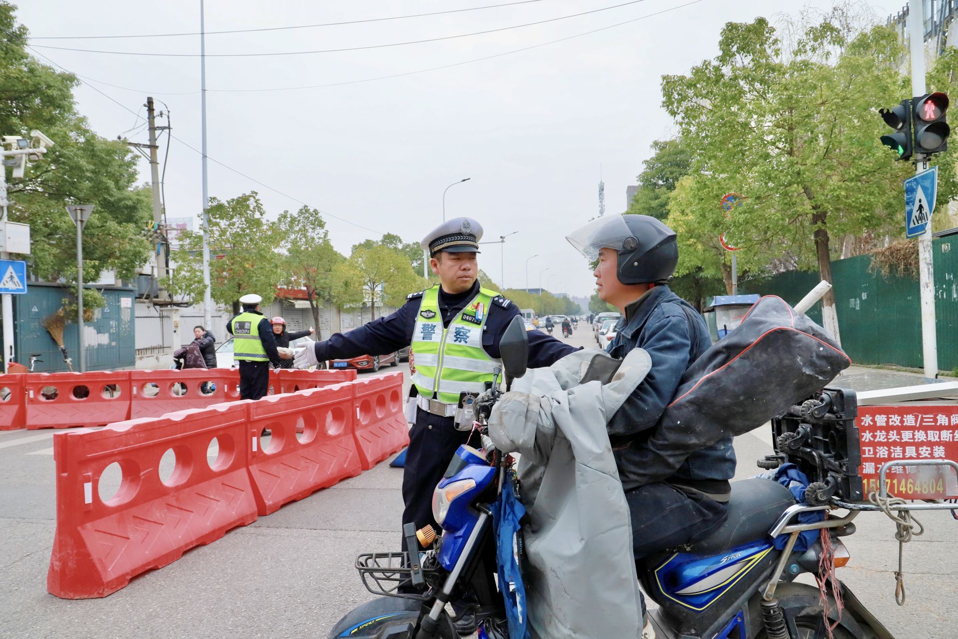 “您好,前方路段即將進行馬拉松賽事,請您配合繞行。”交通大隊民警周劍鋒在航城西路-航城大道與航城東路交會路段執(zhí)勤時,禮貌地對過往電動車駕駛員進行勸導(dǎo)。該路段居民密集,又逢周末,車流量較大。為確保賽道秩序,周劍鋒與同事共勸導(dǎo)私家車及電動車80余輛,耐心向每一位駕駛員解釋賽事情況。周劍鋒笑著說:“‘木蘭·空港馬拉松’已成為黃陂的一張閃亮文體名片,居民朋友們都非常理解,主動配合我們的工作。”