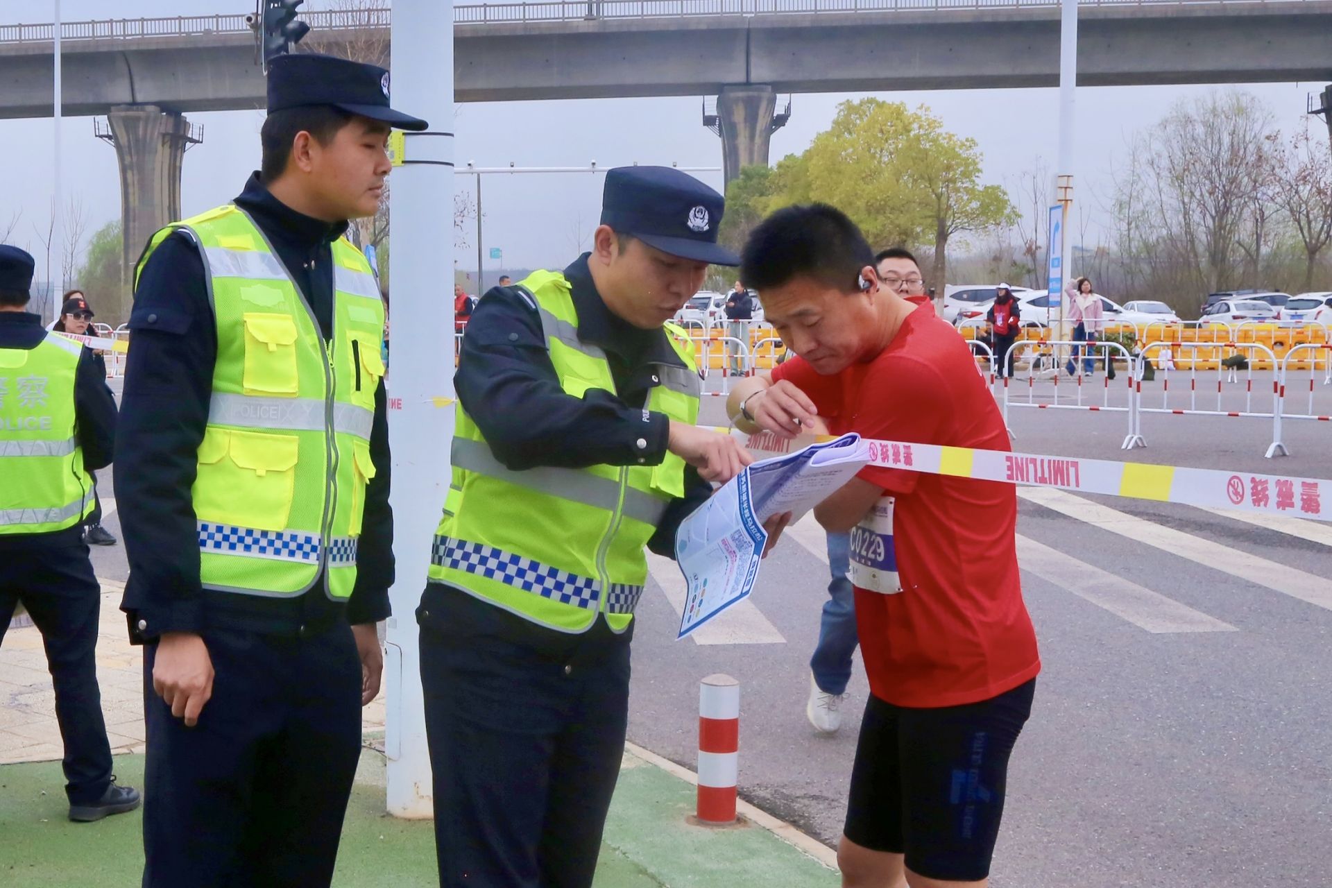 “您好,請問半馬線路是這里嗎?我好像跑錯了!”一名半馬選手慌張地向天河派出所民警樂乘麟求助。樂乘麟負責(zé)興龍路至景云路空港中心終點路段的執(zhí)勤,發(fā)現(xiàn)該選手誤入健康跑線路后,立即拿出賽事線路圖,耐心指引其返回正確賽道。選手連聲道謝后,重新投入比賽。