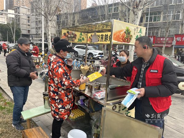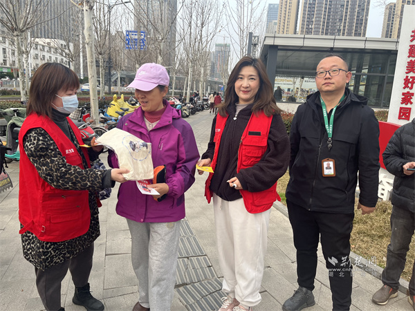 地鐵站前,禁毒社工在人流密集區域設立宣傳展位,通過“知識講解+互動問答”形式,向過往乘客和周邊商販講解含依托咪酯電子煙、“笑氣”等新型毒品的特征及危害,發放帶有禁毒口號的布袋、圍裙等原創禁毒主題紀念品,普及《武漢市毒品違法犯罪舉報獎勵辦法》,鼓勵居民群眾積極檢舉吸販毒違法犯罪行為。