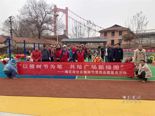 荊楚網(湖北日報網)訊(通訊員 張果)春風送暖,新綠初綻。在這充滿生機的春日,武漢市武昌區白沙洲街道梅花苑社區攜手共建單位武漢農村商業銀行解放橋支行、武昌區快樂寶貝幼兒園、武漢市美景美家物業服務有限公司,以及工會小組、新就業群體和黨員群眾等共70余人,于山河江景閣小區共享廣場開展了一場意義非凡的植樹節志愿服務活動。各方力量踴躍齊聚,以實際行動踐行綠色發展理念,為社區播撒綠色希望。