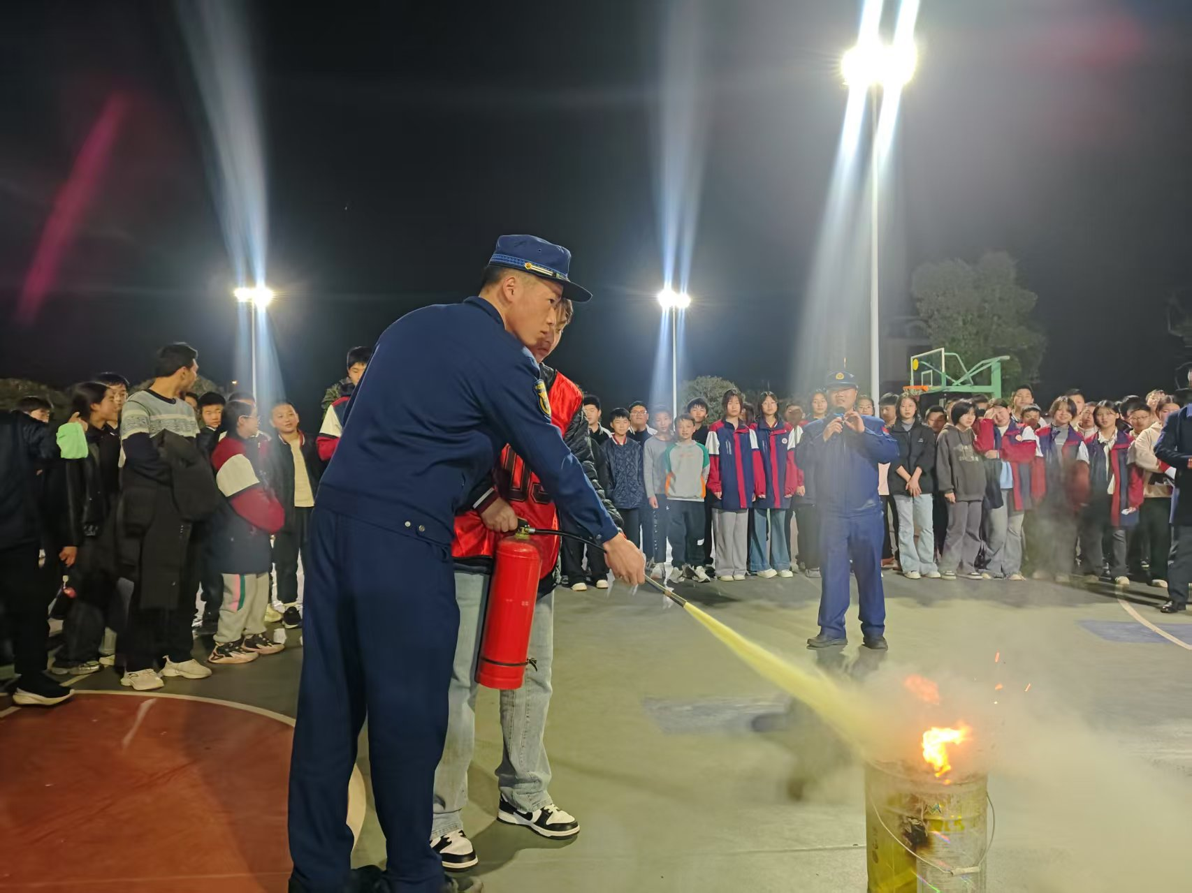 在隨后的消防安全知識培訓環節,消防救援人員對應急疏散逃生演練進行點評,并結合近年來典型校園火災案例,重點講解了校園火災預防要點、初期火災撲救方法以及火場逃生自救技能等實用知識。培訓現場,消防救援人員還詳細演示了滅火器、消火栓等消防設施與器材的正確使用方法,并組織師生開展滅火實戰演練,確保全體師生能夠熟練掌握消防器材操作技能。