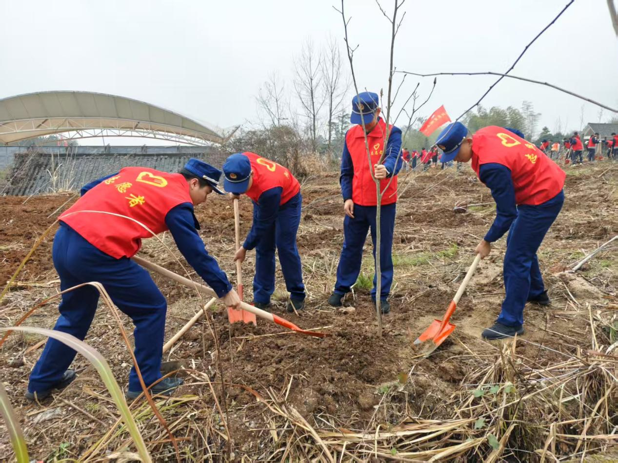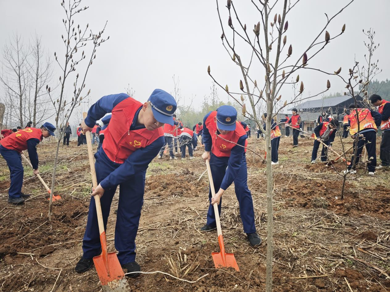 活動現場,消防救援人員發揚“不拍苦、不怕累”的精神,扶苗穩固,揮楸培土、提桶澆灌,整個過程分工明確、配合默契、銜接有序,每一個環節都一絲不茍。整個活動現場到處都是忙碌的身影,到處都是“火焰藍”的青春氣息。經過一上午的辛勤勞動,共在植樹點栽植大小樹苗百余棵,一株株喝飽水的樹苗昂首挺胸地扎根在土地上,一片生機盎然。