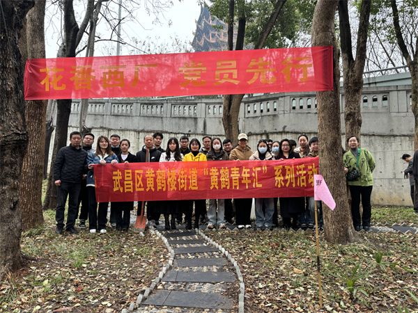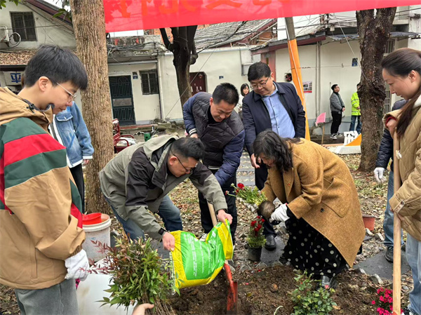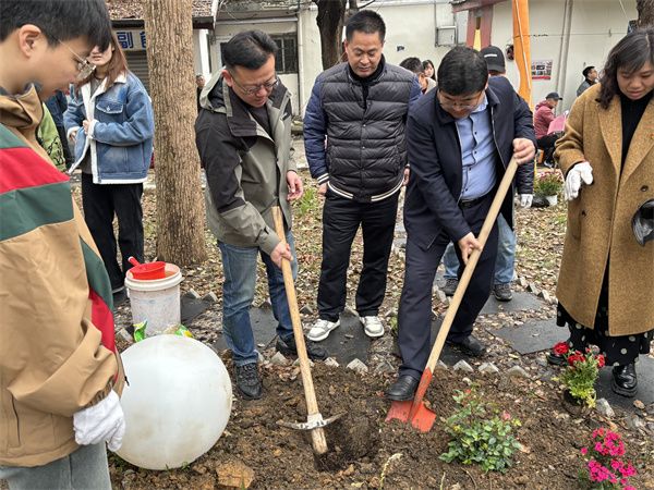 活動中,在街道領導班子的帶領下,街道30余名青年干部、社區黨員和退役軍人志愿者紛紛揮鍬鏟土,在黃鶴樓下的先賢街打卡處種下了南天竹、鐵樹、月季、金雀花、洋牡丹、繡球等各式花卉。一株株新栽的花苗在春風中搖曳,不僅為老街增添了生機,更寄托著大家對美好未來的期盼。