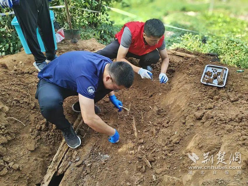 這一幕,源于2024年9月25日,在伍家崗區(qū)聯(lián)豐村一處靜謐的山坡上,武漢大學(xué)歷史學(xué)院考古系副教授張群帶領(lǐng)團(tuán)隊(duì),對一座無名烈士墓進(jìn)行遺骸發(fā)掘和DNA提取。張群全程督導(dǎo)遺骸登記和遺物建檔,小心翼翼地?fù)荛_泥土,細(xì)致地清理每一塊遺骸。經(jīng)過4個(gè)小時(shí)的緊張工作,烈士遺骸被完整提取,并帶回實(shí)驗(yàn)室進(jìn)行鑒定。