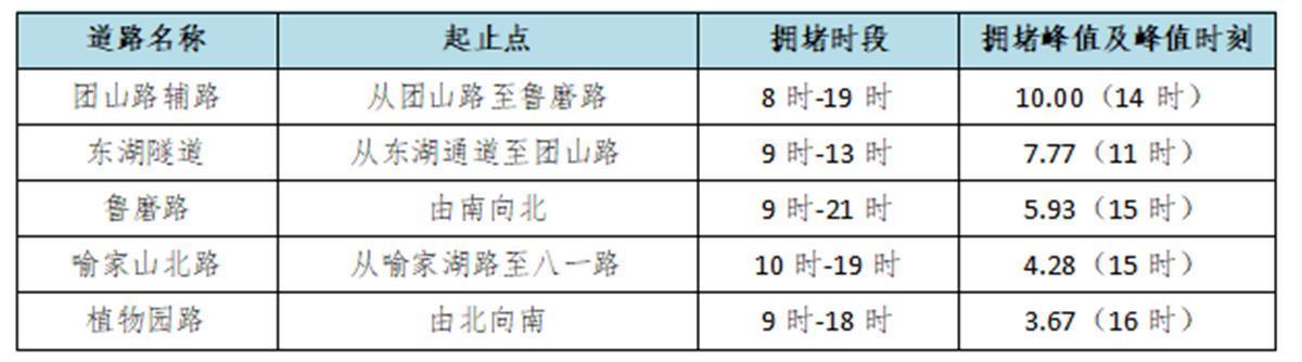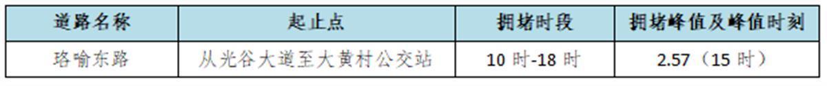 5.珞喻東路大黃村公交站已于3月10日升級成功,將吸引較多游客前往打卡、賞景,預計周邊的珞喻東路擁堵延時指數日均1.5左右,擁堵時間可能集中在13時至19時,可能在18時呈現峰值2.30(嚴重擁堵)。