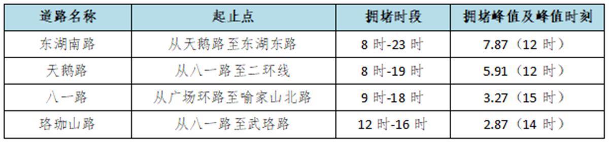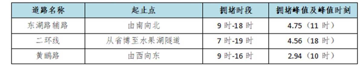 3.武漢大學本周已開啟線上預約賞櫻,預計周末擁堵延時指數日均2.02,該區域中度以上擁堵時間可能集中在7時至19時,長達12小時,峰值呈現在14時,可能達3.60(嚴重擁堵)。
