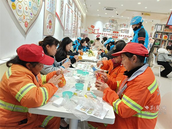 DIY手工制作環(huán)節(jié),女職工們發(fā)揮創(chuàng)意,將彩色玻璃碎片拼貼成春日主題花瓶,當(dāng)馬賽克碎片在玻璃瓶上漸次綻放,這場法治之旅轉(zhuǎn)入心靈療愈時段。“每天在快遞站處理包裹,很久沒這么專注做件自己的事了。”快遞員小張笑著說。活動現(xiàn)場誕生20余件手工藝品,成為驛站里流動的溫暖風(fēng)景,大家合影留念,留下美好瞬間。
