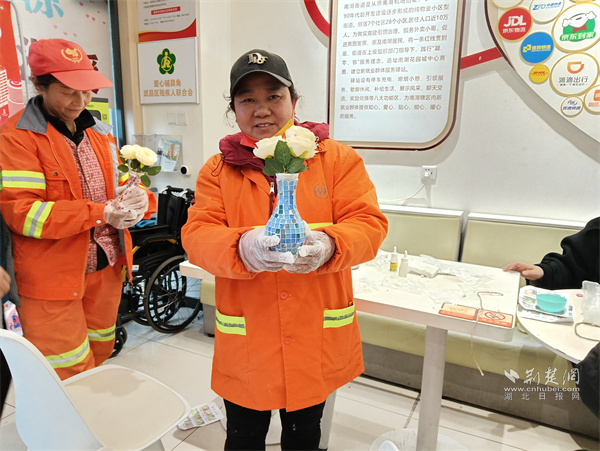 環(huán)衛(wèi)工人展示DIY手工成品。 通訊員供圖