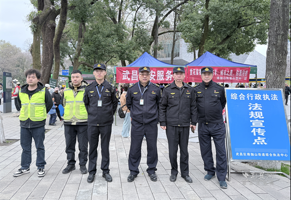 為全方位守護校園秩序,綜合執法中心與武漢大學保衛部強強聯合,組建了專門的機動巡查隊,對校園內的賞櫻區域進行全天候巡查。此外,綜合執法中心還在武大弘毅門、茶港門、珞珈門、珞南門等多個關鍵點位安排執法人員輪班值守,確保每一個角落都井然有序。