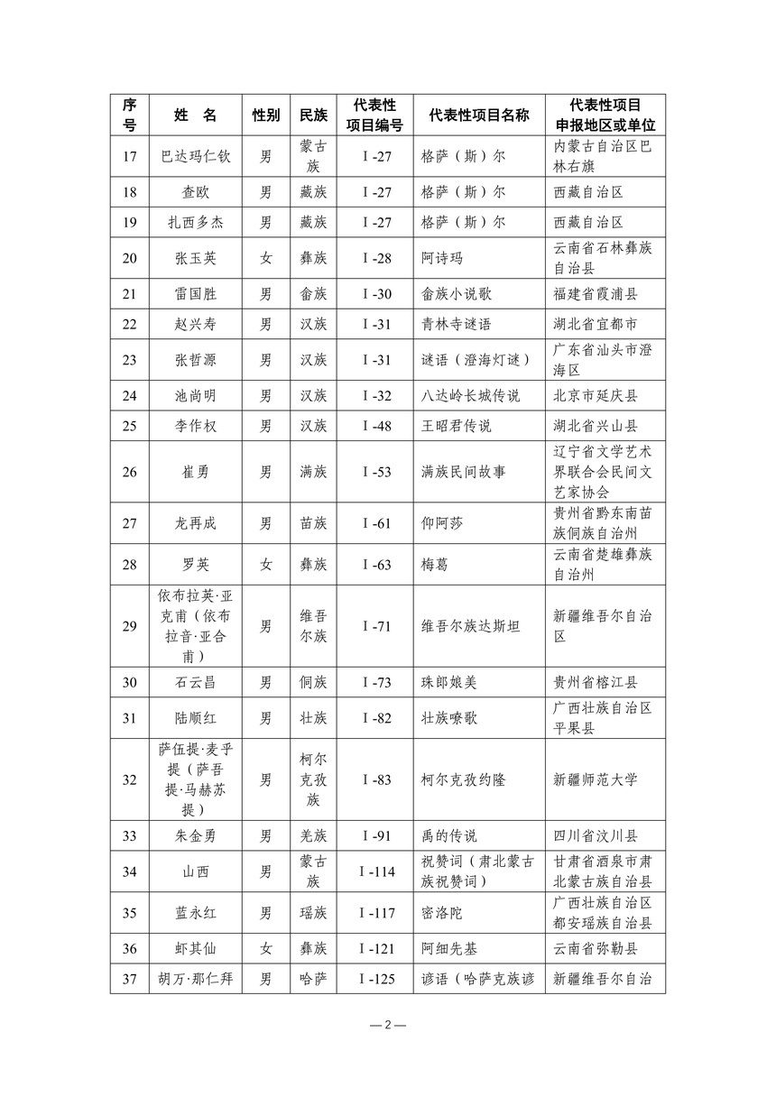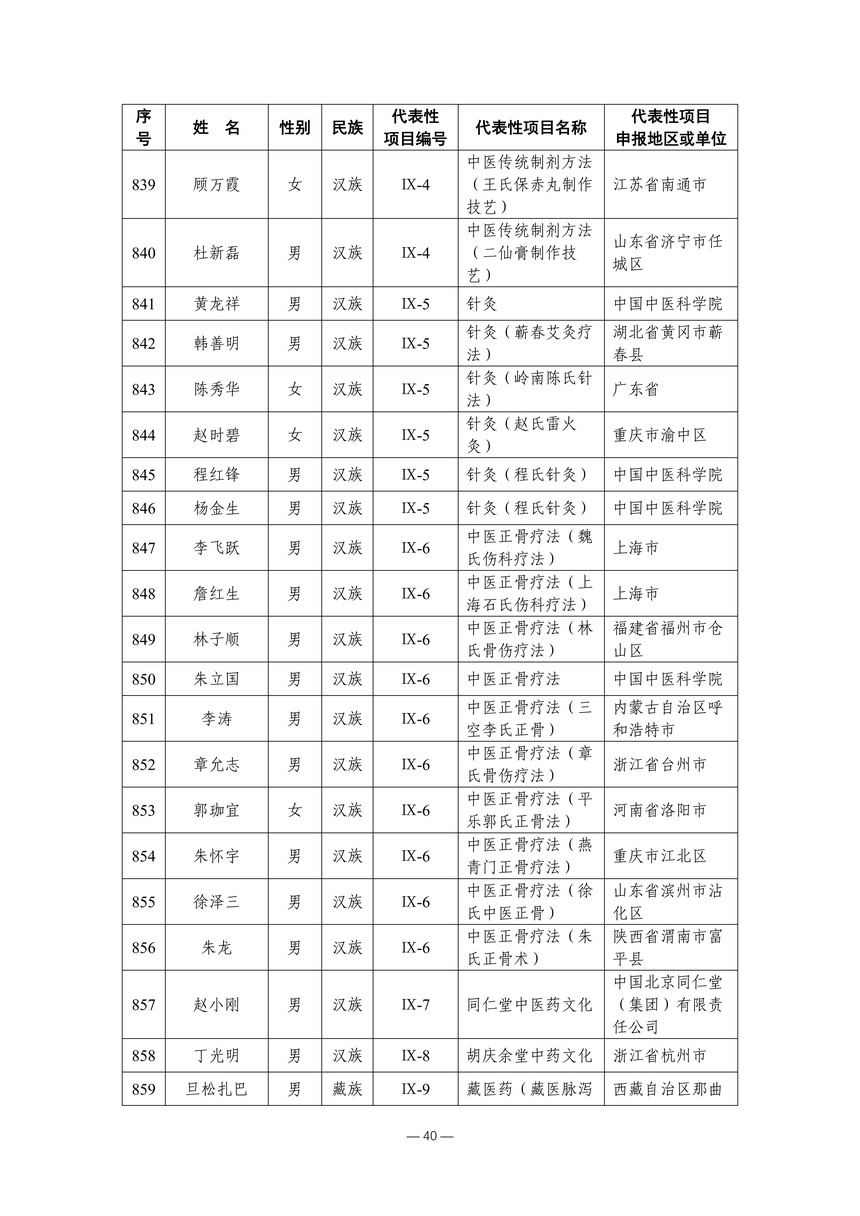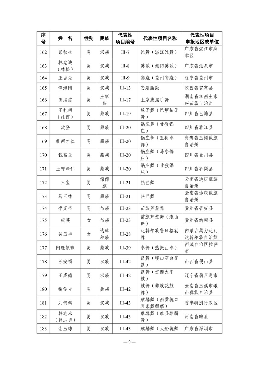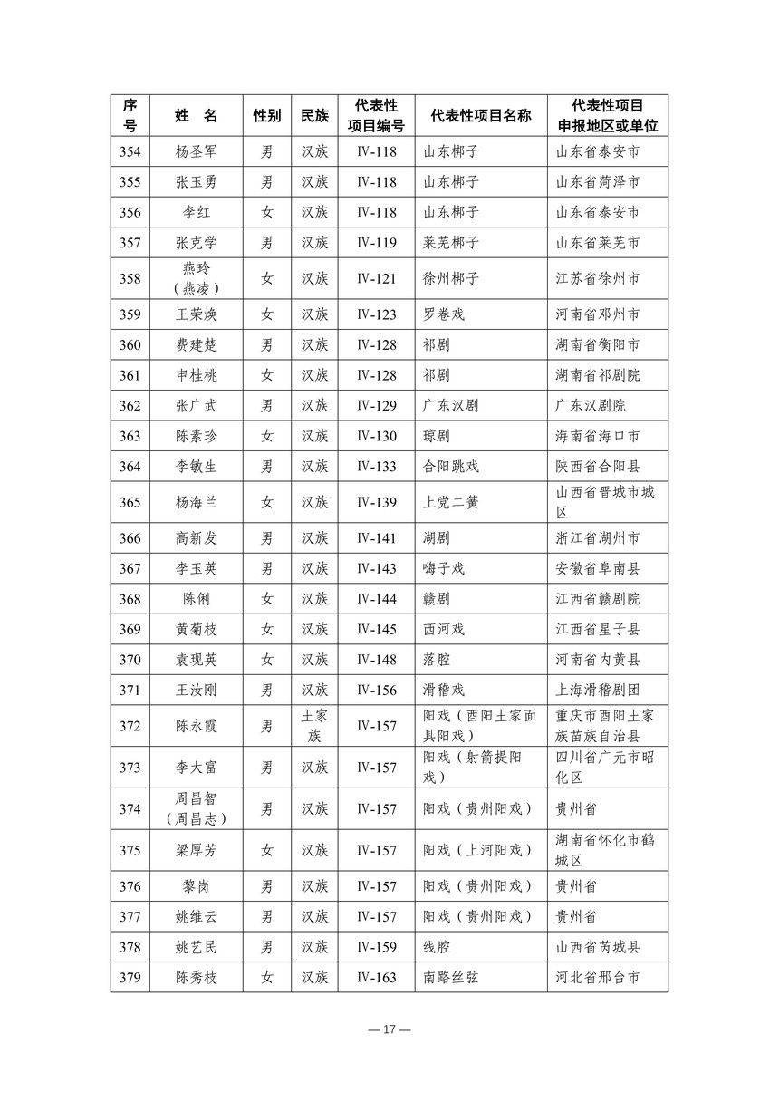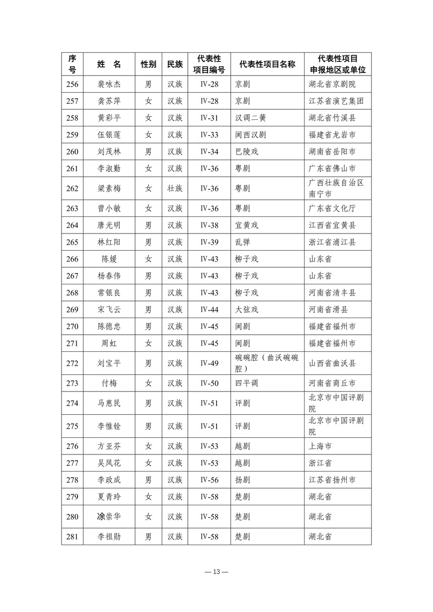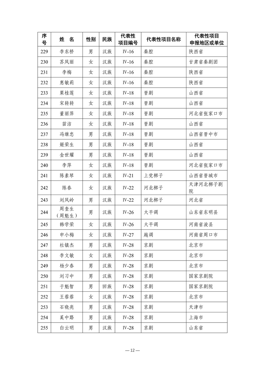 習近平總書記高度重視非物質文化遺產保護傳承,強調要積極培養傳承人,一代一代接下來、傳下去。近年來,各地高度重視非物質文化遺產代表性傳承人隊伍建設,涌現出一大批德藝雙馨、技藝精湛,在非物質文化遺產保護傳承中發揮重要作用的典型代表。根據《中華人民共和國非物質文化遺產法》及《國家級非物質文化遺產代表性傳承人認定與管理辦法》有關規定,為加強非物質文化遺產傳承人隊伍建設,進一步提升非物質文化遺產系統性保護能力水平,保護和傳承好非物質文化遺產,文化和旅游部組織開展第六批國家級非物質文化遺產代表性傳承人認定工作。經推薦申報、材料復核、專家初評、社會公示、評審委員會審議等程序,確定了第六批國家級非物質文化遺產代表性傳承人名單(942人),現予以公布。