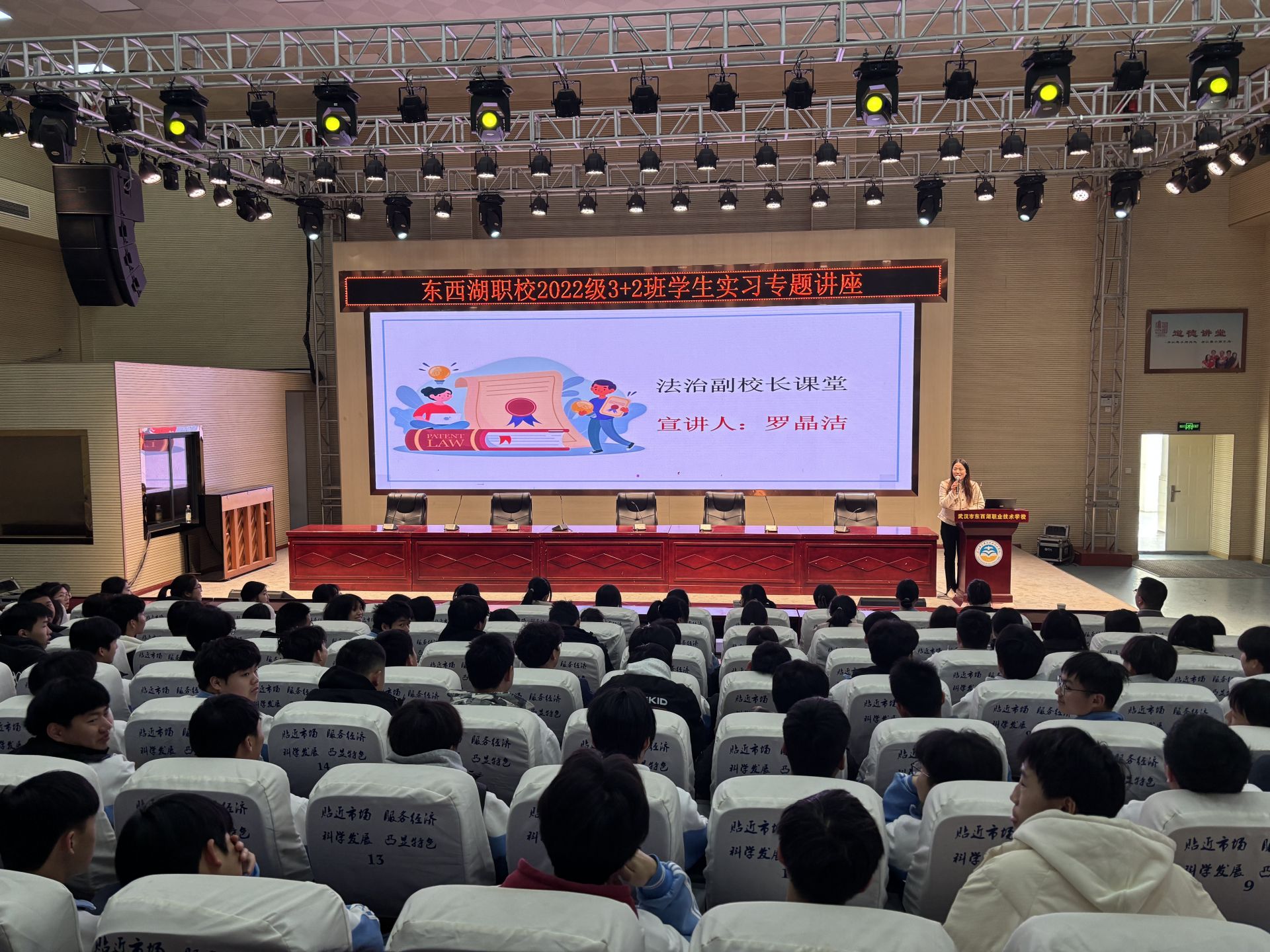 東西湖區職校法治副校長羅晶潔結合自身工作經歷,叮囑同學們要遵紀守法、誠實守信,筑牢安全底線,捍衛合法權益,走好職業生涯第一步。針對在場同學專業特性,羅校長提出了許多具體可行的法律建議,如汽修專業的同學常與機械電路、易燃物品打交道,務必嚴格遵守《中華人民共和國安全生產法》和操作規范;幼教專業的同學要牢記《中華人民共和國未成年人保護法》,禁止體罰,尊重隱私,及時報告安全隱患。