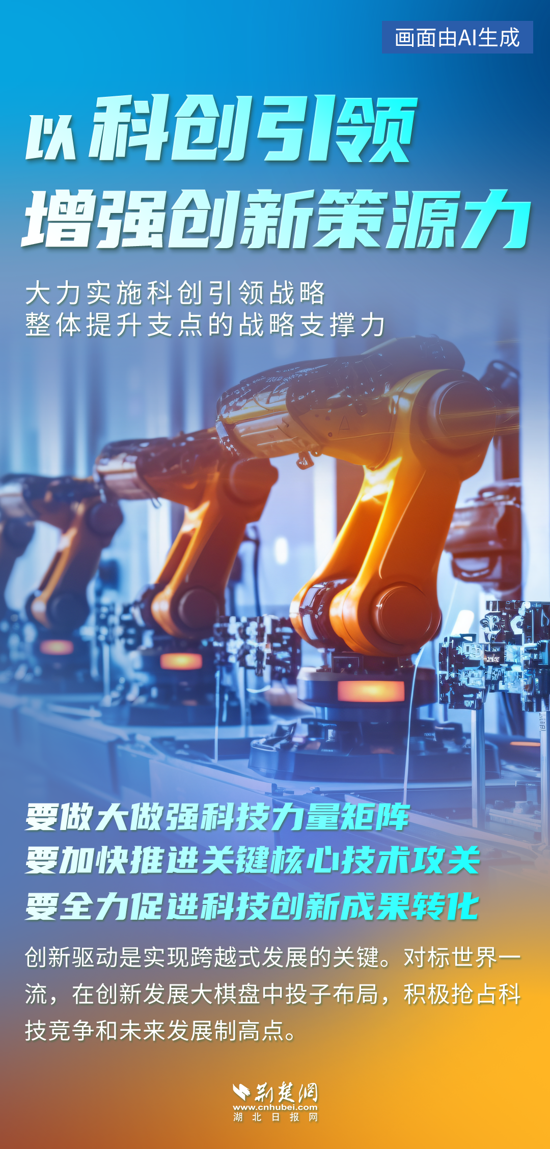 湖北上下將全部工作向“支點(diǎn)建設(shè)”聚焦聚力,整體提升戰(zhàn)略支撐力、創(chuàng)新策源力、產(chǎn)業(yè)競(jìng)爭(zhēng)力、開放輻射力、生態(tài)承載力、文化影響力、區(qū)域協(xié)同力,“七力”齊發(fā),為全國(guó)大局作出更大貢獻(xiàn)。