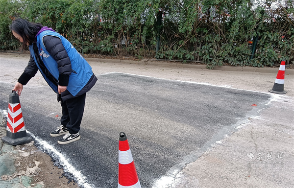 炭廠角居民片區門口路面是居民的主要進出道路,因長期遭受大型車輛頻繁碾壓,路面嚴重破損,這種狀況不僅影響到周邊居民的日常出行,還存在諸多安全隱患。為解決轄區居民的急難愁盼,護航居民的出行安全,社區匯聚多方力量,迅速采取措施,致力于為居民鋪就“平安路”。