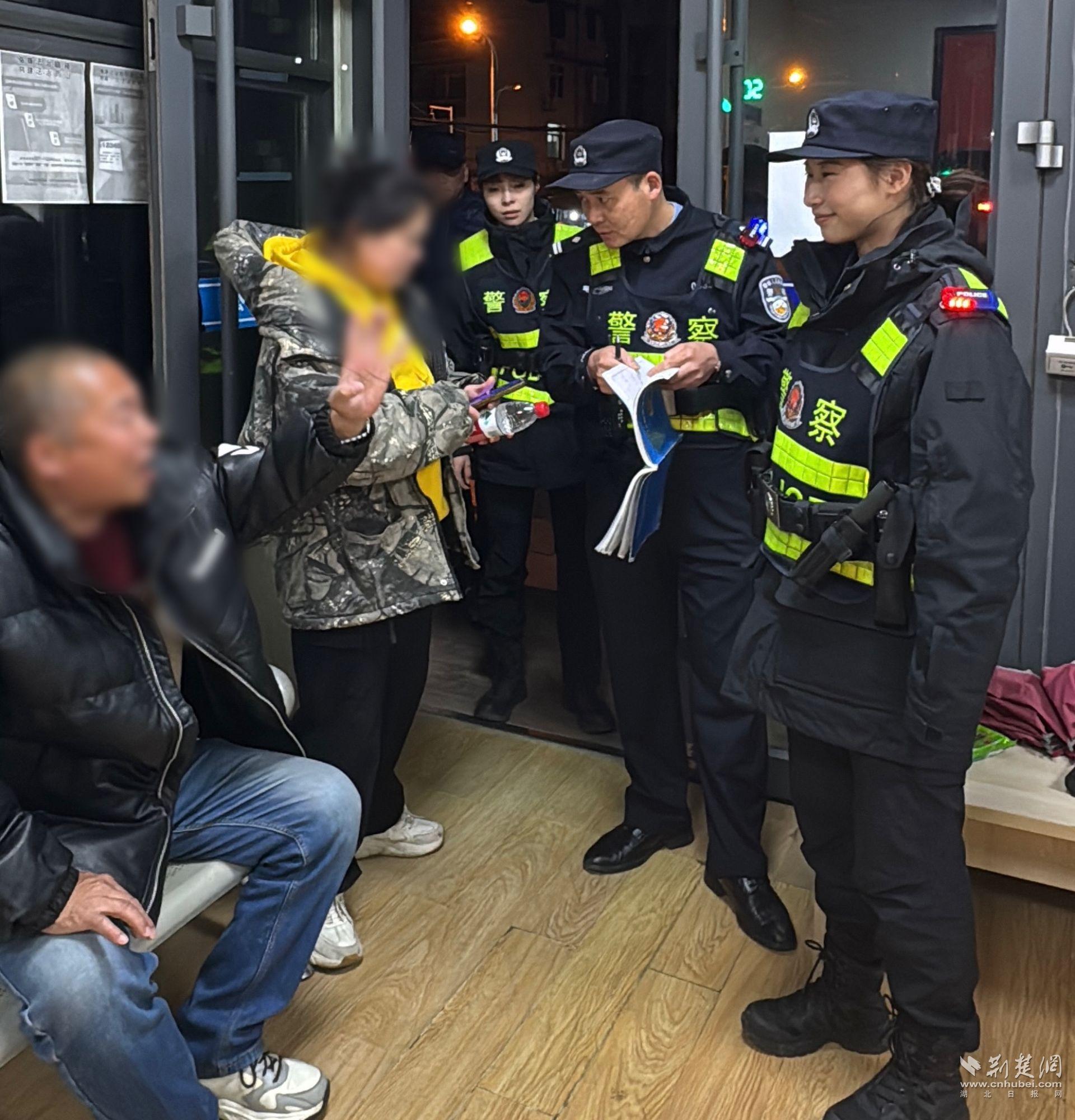 爹爹被民警攙扶下車后,因尚未醒酒,對身邊的民警輔警有些排斥,也不愿溝通交流。為了讓爹爹卸下心防,步巡隊民警李新偉主動與其攀談起來,并從車內拿了一瓶礦泉水給爹爹漱口醒酒,這一暖心的舉動拉近了兩人的距離。隨后,李新偉又與輔警潘夢婷一道攙扶爹爹前往警務站休息。