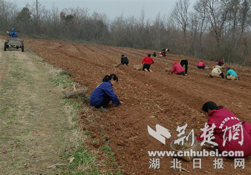 荊門市東寶區石橋驛鎮楊橋村村民正在種植知母幼苗。通訊員 鐘澤紅 攝