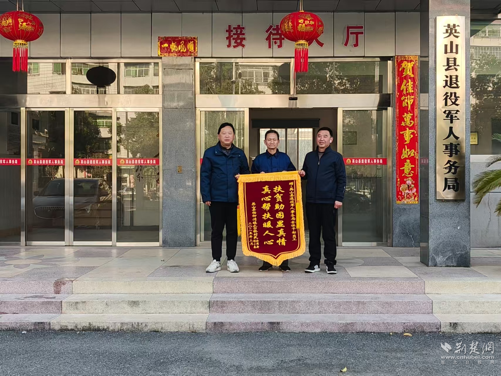 荊楚網(wǎng)(湖北日?qǐng)?bào)網(wǎng))訊(通訊員常夢(mèng)星)3月18日,英山縣楊柳灣鎮(zhèn)退役軍人徐國(guó)新一大早就來(lái)到縣退役軍人事務(wù)局,把一面“扶貧助困顯真情,真心幫扶暖人心”的錦旗送到縣退役軍人事務(wù)局兩位副局長(zhǎng)手中,感謝退役軍人事務(wù)部門(mén)為他排憂(yōu)解難,送去關(guān)懷和溫暖。