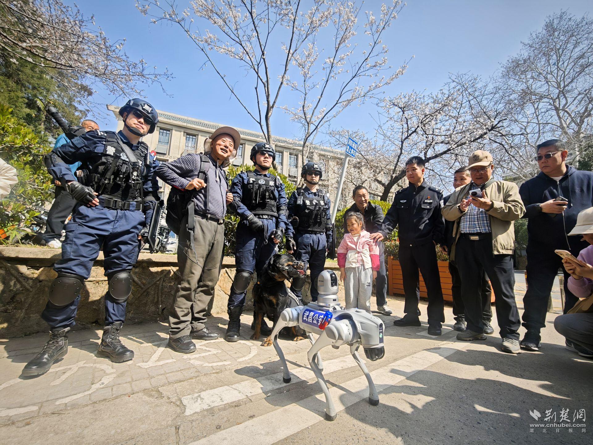 荊楚網(湖北日報網)訊(記者 白云 通訊員 胡子昂、孫遜、董興龍)隨著近日氣溫回升,3月20日,武漢大學校園內櫻花綻放,游人如織。為保障游客安全、維護校園秩序,武昌公安聯合校方啟用PTU輕裝機動警隊、四足巡檢機器狗及無人機編隊,組成“空地一體”的智能巡控網絡,為武漢大學櫻花季保駕護航。