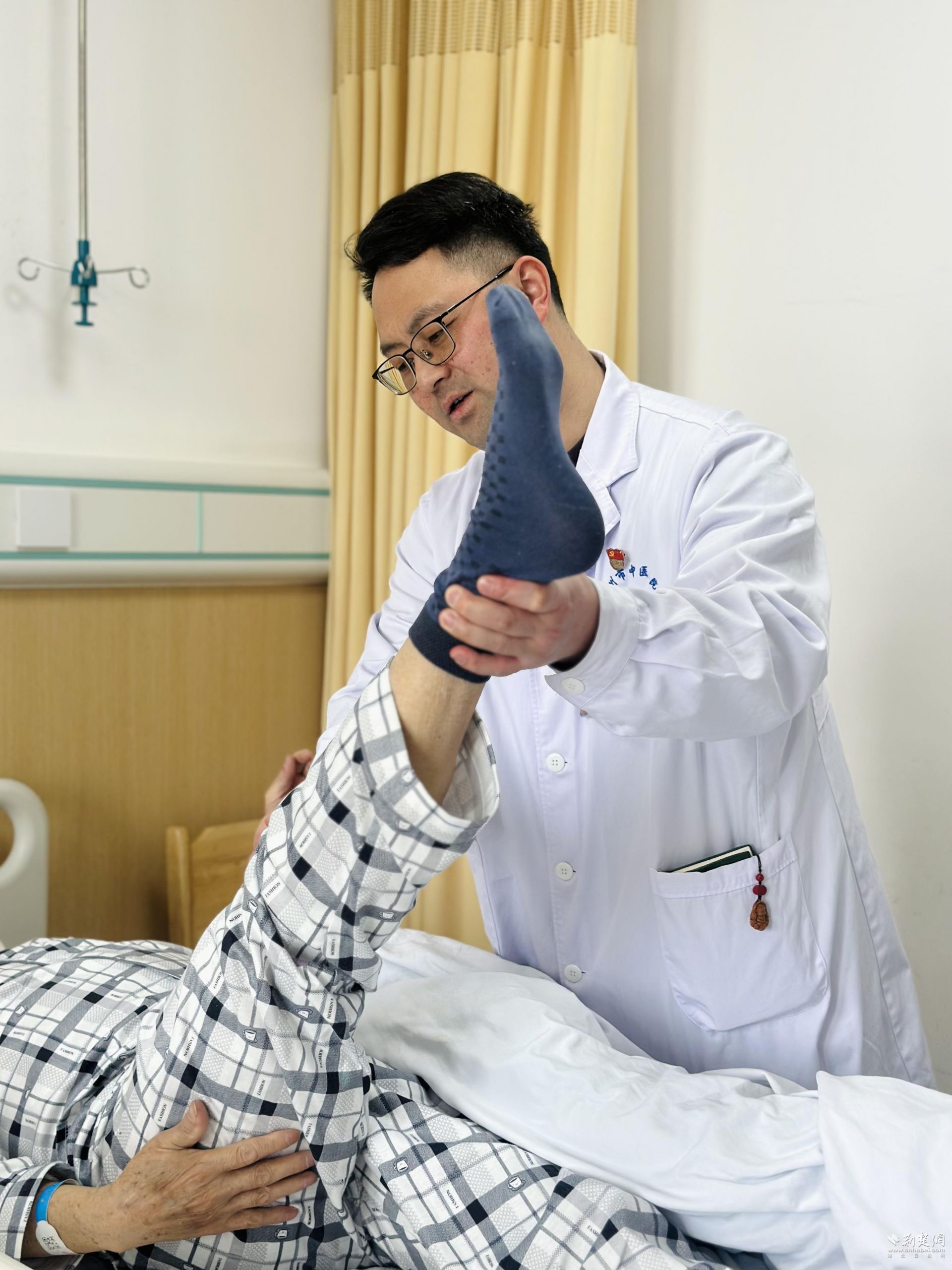 三載跟師苦修,他將百年技藝凝練成現代診療體系。面對橈骨遠端骨折患者,他雙手扣住傷處,折頂、旋轉、對位一氣呵成。
