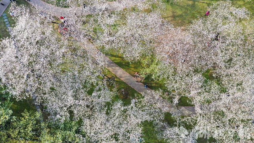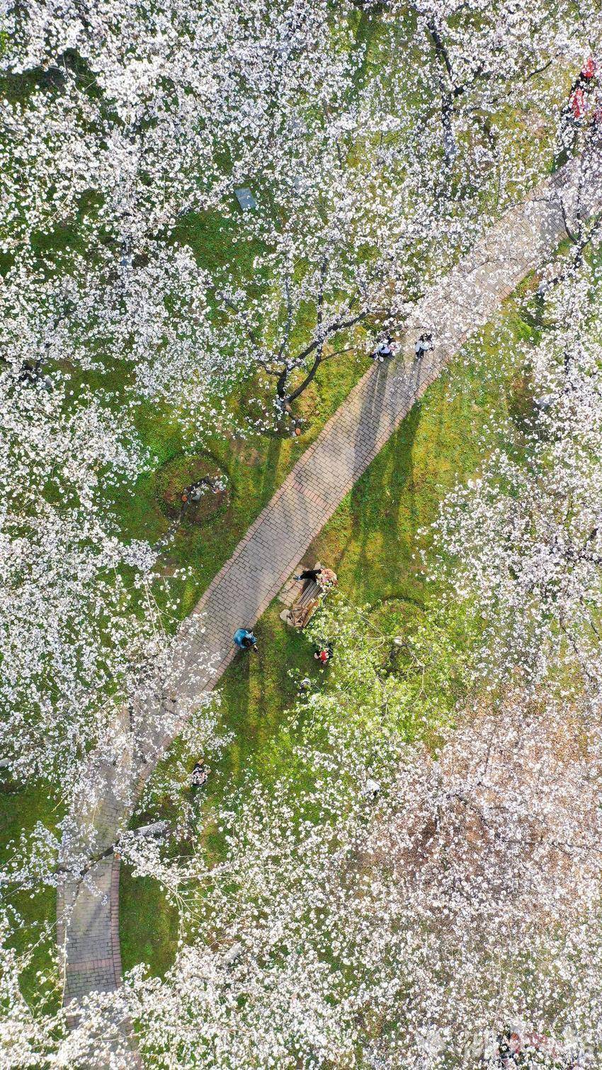 “早櫻剛剛謝幕,現在盛開的主要是中櫻——染井吉野,它剛剛進入盛花期,未來幾天顏值將更高。”青山公園管理處工作人員曹明介紹,染井吉野開花時,花型好看而明顯,加上樹形適中,枝條伸展,更顯得花朵密集,如白云飄飄,觀賞效果最佳。