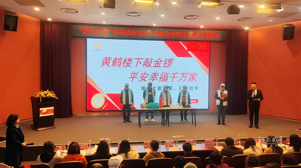 經過精彩角逐,綜合7位專家評委、25位大眾評委評分后,最終確定大賽前三名,分別為“黃鶴樓下敲金鑼·平安幸福千萬家”西廠口社區平安合伙人賦能項目;一“箭”傾心·緣定終身----花堤社區婚俗改革系列活動項目;大成社區“重塑鄰里情,點亮新家園”項目。