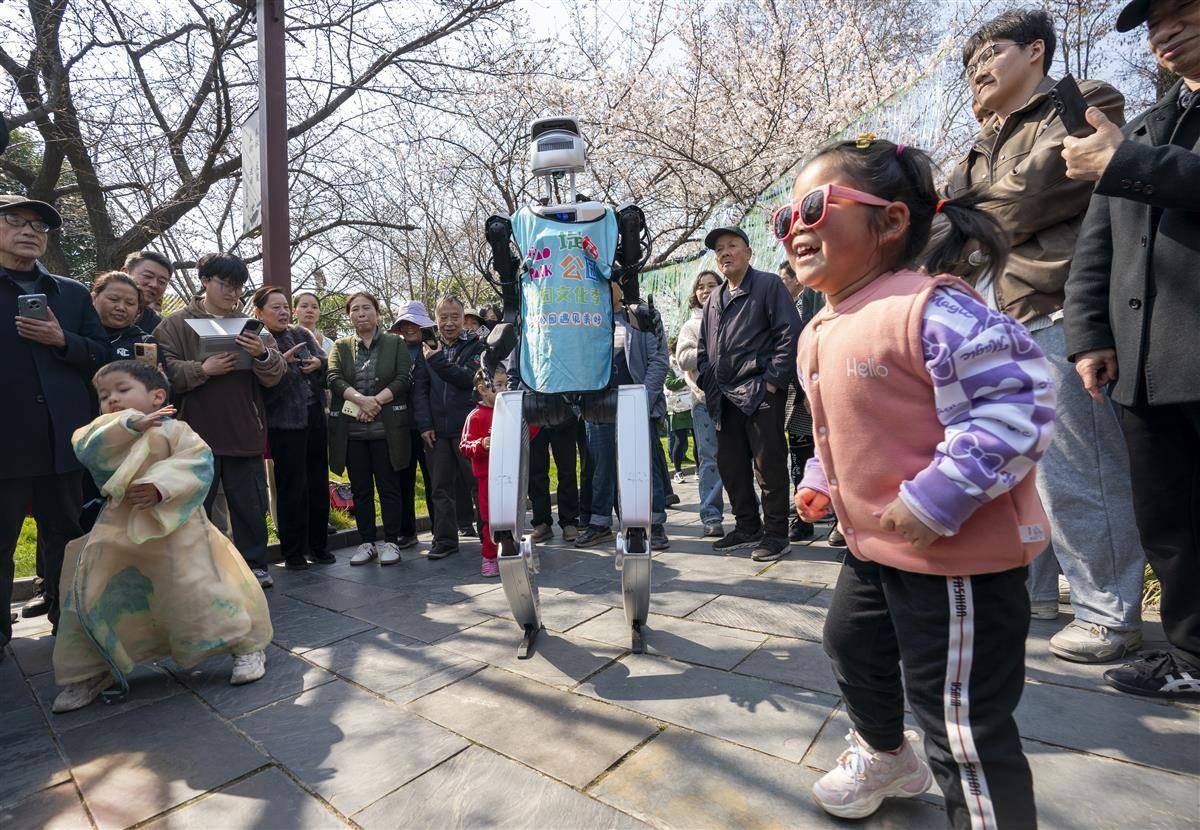 3月19日,人形機器人“小天”現(xiàn)身武漢堤角公園,充當起了“櫻花導游”。它是由湖北珞珈實驗室與武漢京天機器人有限公司聯(lián)合打造的智能機器人。