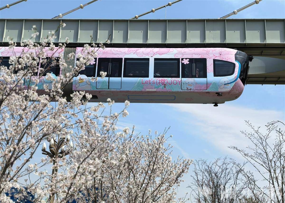 光谷空軌也適時為車輛換上“櫻花新裝”,穿行在花海之間的“櫻花”空軌,成為市民賞櫻打卡好去處。