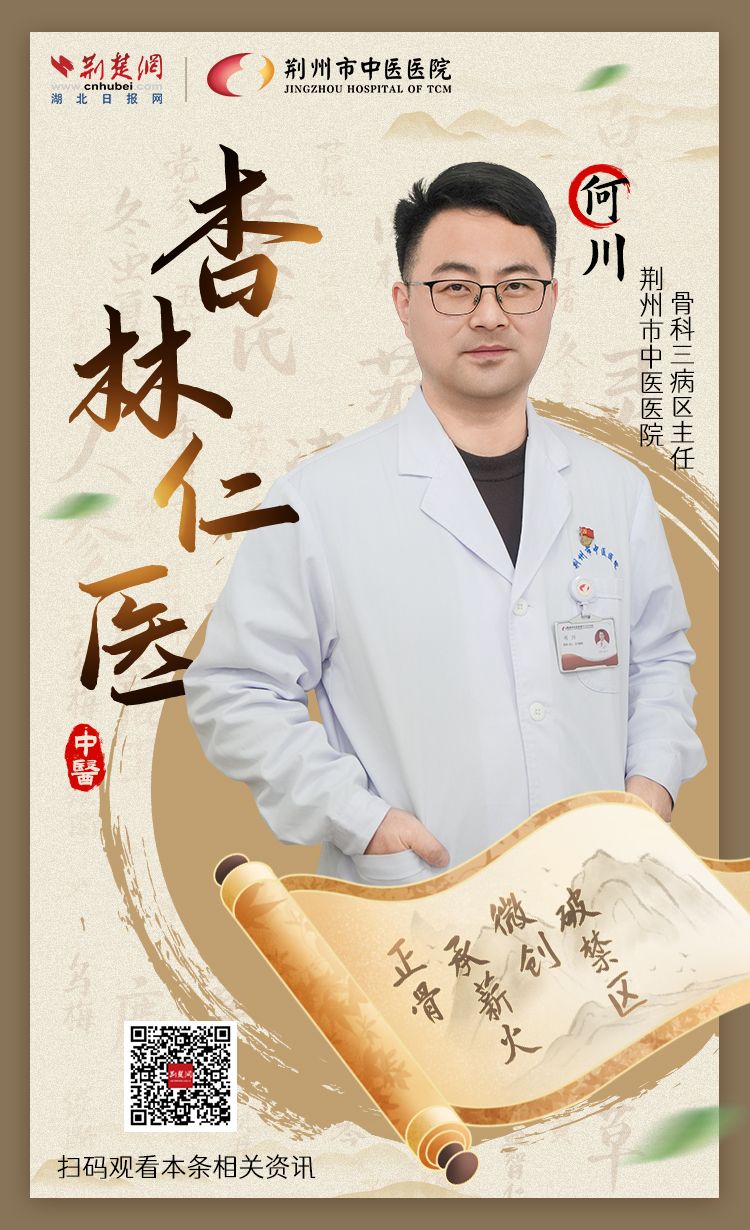 何川:荊州市中醫(yī)醫(yī)院骨科副主任兼骨科三病區(qū)主任,主任醫(yī)師,碩士生導(dǎo)師。全國(guó)第五批名老中醫(yī)藥專(zhuān)家學(xué)術(shù)經(jīng)驗(yàn)繼承人,湖北省時(shí)珍人才——中醫(yī)臨床優(yōu)秀人才。湖北中醫(yī)藥大學(xué)、長(zhǎng)江大學(xué)醫(yī)學(xué)院碩士生導(dǎo)師。