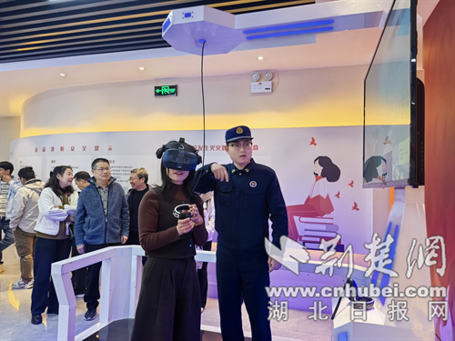 參觀人員體驗VR實景逃生。通訊員 供圖