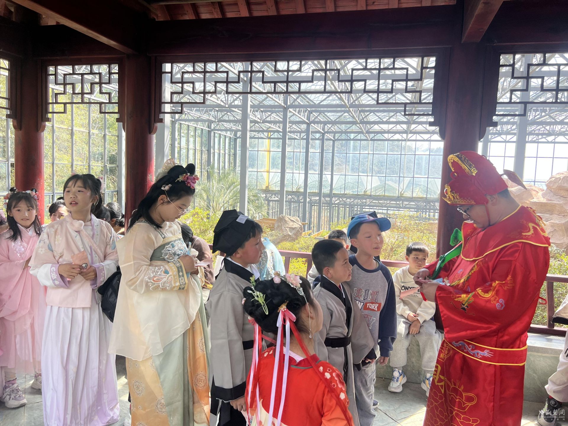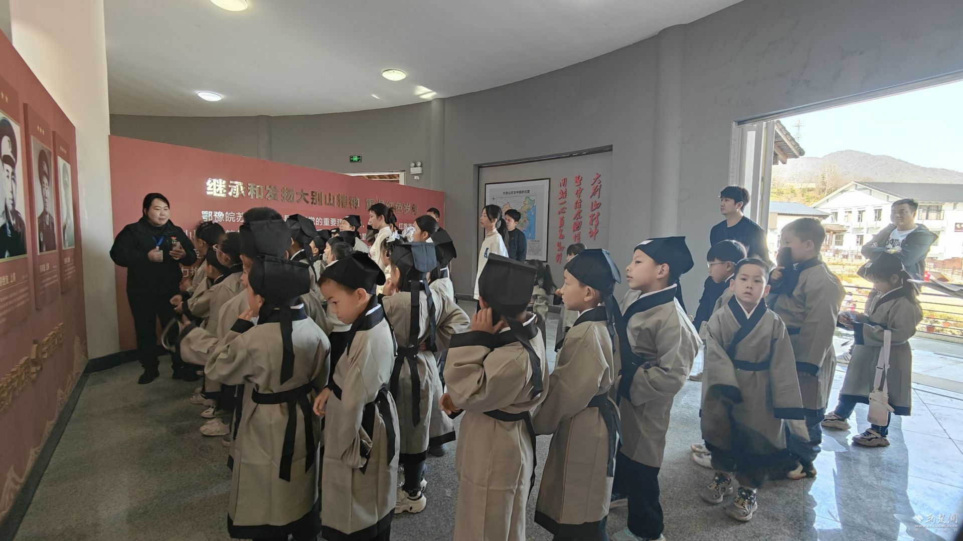 在大別山精神紅色文化展覽館,少年們?cè)谥v解員的帶領(lǐng)下,聆聽革命先烈英勇事跡,了解紅色革命歷史,在實(shí)踐中堅(jiān)定理想信念,錘煉意志品質(zhì)。在杜鵑博覽園龜峰鵑影漢服館,孩子們換上古風(fēng)漢服,化身“漢唐小書童”開展活字印刷術(shù)實(shí)踐,穿越時(shí)光隧道,體會(huì)“仁愛禮義”的中華傳統(tǒng)美德。在老師和技術(shù)人員的指導(dǎo)下,孩子們學(xué)習(xí)了解活字印刷術(shù)的發(fā)明過程、發(fā)展歷程以及對(duì)世界文化的貢獻(xiàn),并親自動(dòng)手排版、上墨、拓印,在一按一壓、一筆一畫中領(lǐng)悟工匠精神,感悟古代智慧結(jié)晶。研學(xué)最后一站來到湖北名茶“龜山巖綠”原產(chǎn)地。春日的茶園清香漫溢,漫山遍野的茶樹郁郁蔥蔥。孩子們穿梭于茶園小徑,近距離觀察茶葉生長(zhǎng),認(rèn)識(shí)茶樹結(jié)構(gòu),在實(shí)踐中探尋“從葉到茶的奧秘”。