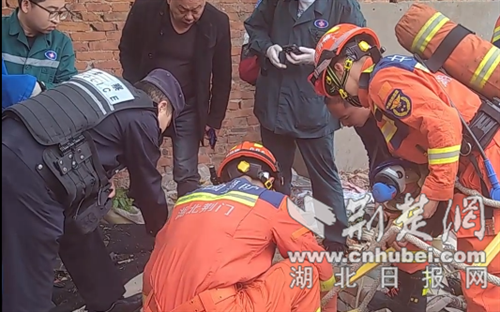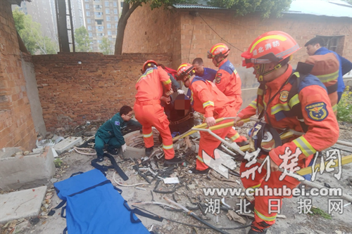 當日10時21分許,荊門市消防救援支隊指揮中心接警稱,培公大道一待拆區域有人墜井。接警后,荊門市長坂坡路特勤消防救援站迅速出動2車12人趕赴現場進行救援。救援人員發現,該井口直徑約0.8米,井中有大量積水,且到洞口有5-6米的高度。被困男子因長時間浸泡,已出現失溫癥狀,體力嚴重透支。