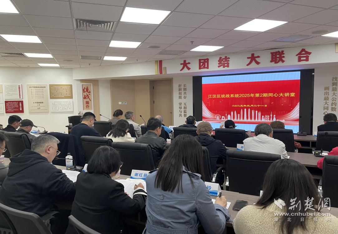 荊楚網(湖北日報網)訊(記者 何婧 通訊員 蔡宇欣)3月21日,江漢區統一戰線2025年第2期“同心·大講堂”在區民主黨派之家舉行,近50名統戰成員參加活動。