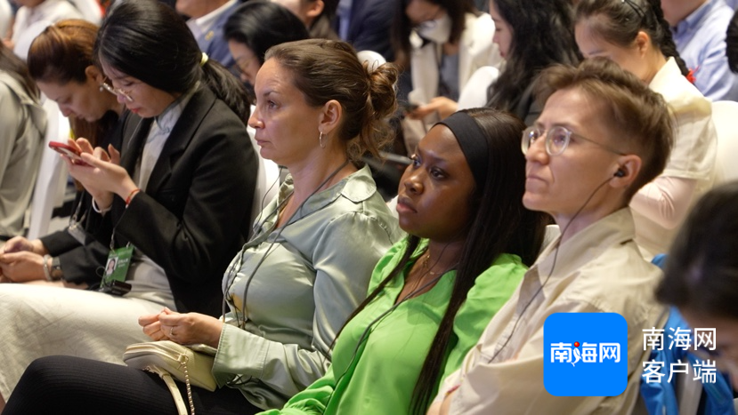 中國國際新聞交流中心外媒采訪團外媒記者參加“全球自由貿易港發展論壇”現場圖。記者 袁玉龍 攝